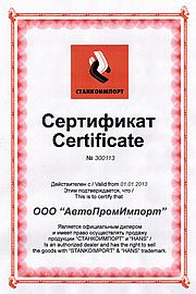 Компания «АвтоПромИмпорт» имеет множество сертификатов (сертификат официального дистрибьютора: Сибек, Trommelberg, NORDBERG AUTOMOTIVE, KING TONY, KraftWell, Brain Bee, HAWEKA, МАСТАК, JOHN BEAN, Autostapel, Portotecnica, Hunter, ATIS, Apac, ЧЗАО, «АЕ&Т», Hofmann, TECO, OMA Garage Equipment, "Станкоимпорт", "Hans", "REMEZA", "FIAC", "GAV", "SUMAKE", "ProfHelper" и др.), свидетельствующих о высоком уровне доверия производителей.